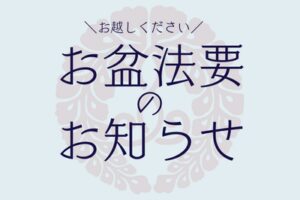 初めてお盆をお迎えになるにあたり、初盆(新盆)法要をご希望の方は七月よりお参りいたしますのでご連絡ください。八月に入りますと、例年通りのお盆のお参りと重なり、日程などのご希望に添えにくくなります。八月十三日(日)〜十四日 […]
